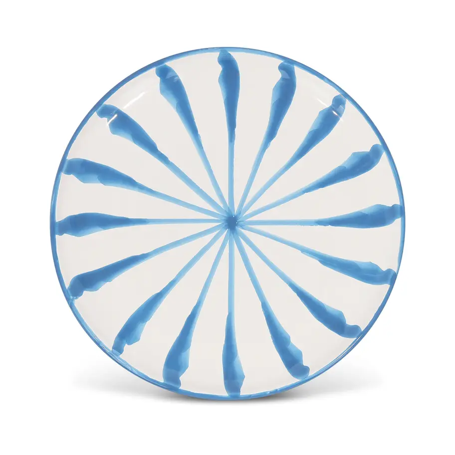 Hand-painted with candy cane stripes, the Granada Azure Dessert Plate is subtly striking and well-suited for dining, table decoration, or as wall decor.