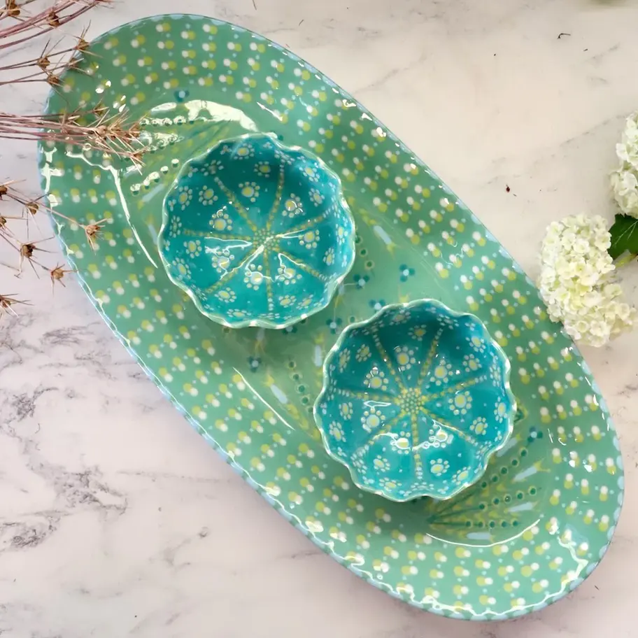 Every object is hand-painted on such finely moulded ceramic that it looks just like porcelain, and still they are dishwasher-safe and microwave-safe.